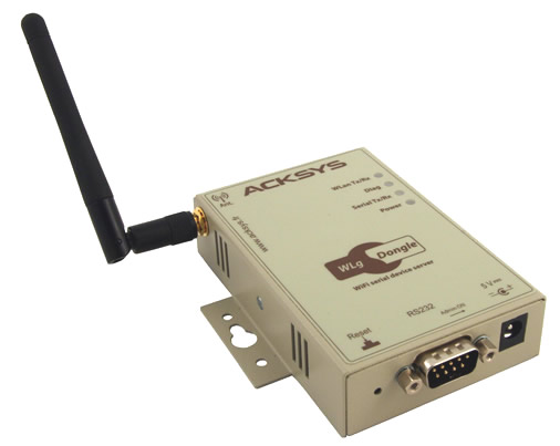 ACKSYS renews its serial to wireless solution offer by introducing the WLg-DONGLE, a compact wireless RS232 serial to WiFi Ethernet server with support for 2.4 GHz and 5 GHz radio bands.