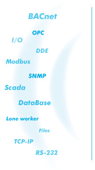 - Industrial SCADA systems via Alert’s integrated OPC interface or specific modules (Intouch, AppServer, WinCC, PCVue, Cimplicity, Citect ...), which are supplied by default with the software.